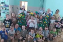 Затем все вместе устроили соревнования по украшению ёлочек, роль которых играли воспитатели, и конечно водили хоровод под знаменитую песню «В лесу родилась ёлочка». После началась пора весёлых забав: «Зимняя викторина», «Снежкобой» и «Карнавальный танец». В заключение мероприятия дети изготовили своими руками новогодний подарок – символ наступающего года, весёлую лошадку.
