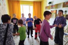 Ребята активно включились в игру, отвечая на интересные вопросы и соревнуясь друг с другом. Каждый раунд игры дополнялся весёлой активностью: «Повтори в такт», «Карлики и великаны» и другие задания.