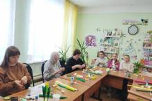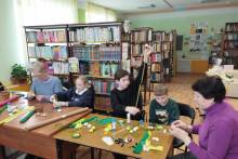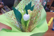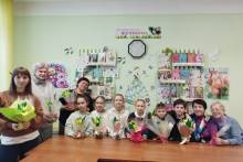 Над созданием оригинальных букетов из первоцветов (крокусов) трудились представители нескольких поколений – бабушки, мамы, дочки, внучки и даже внуки. Работа с гофрированной бумагой требовала от каждого аккуратности и терпения. Атмосфера творчества и доброжелательности царила на мастер-классе, а праздничное настроение создавала интересная книжная выставка «Её величество Женщина!». И результаты превзошли все ожидания! Нежные белые и желтые крокусы, внутри которых спрятались любимые конфеты, были закреплены в горшочках и корзинках и красиво оформлены в букеты. В каждый вложена красивая праздничная открытка.