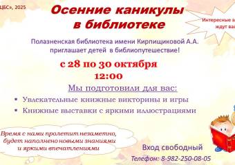«Осенние каникулы в библиотеке» Полазненская библиотека имени А. А. Кирпищиковой